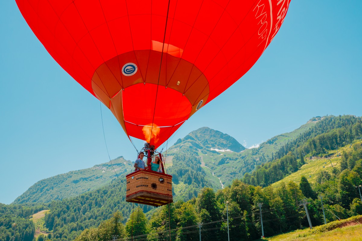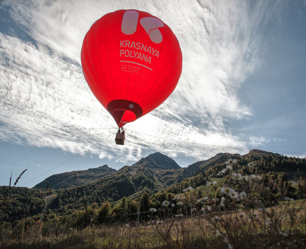 Воздушный шар поднимается над Поляной 960 на 40-50 метров. Отсюда открывается прекрасный обзор на Главный Кавказский хребет, долины рек Мзымта и Лаура, массивы гор Ачишхо, Чугуш и Псеашхо.